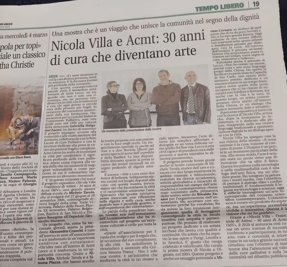 Nicola Villa e Acmt: 30 anni di cura che diventano arte 2 Mar, 2026 Nicola Villa e Acmt: 30 anni di cura che diventano arte i sul fine vita