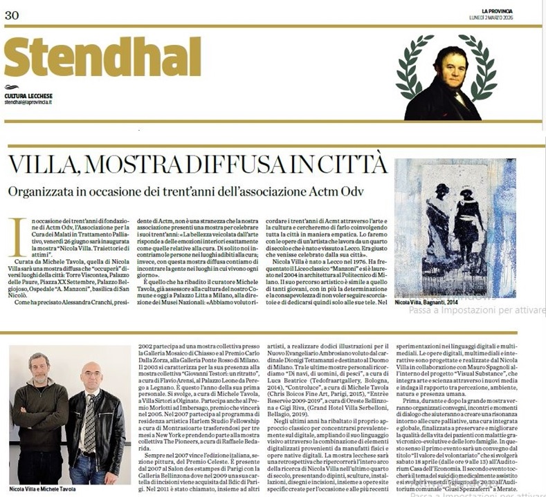 Villa, mostra diffusa in città – Organizzata in occasione dei trent’anni dell’associazione ACMT OdV 2 Mar, 2026 Villa, mostra diffusa in città – Organizzata in occasione dei trent’anni dell’associazione ACMT OdV